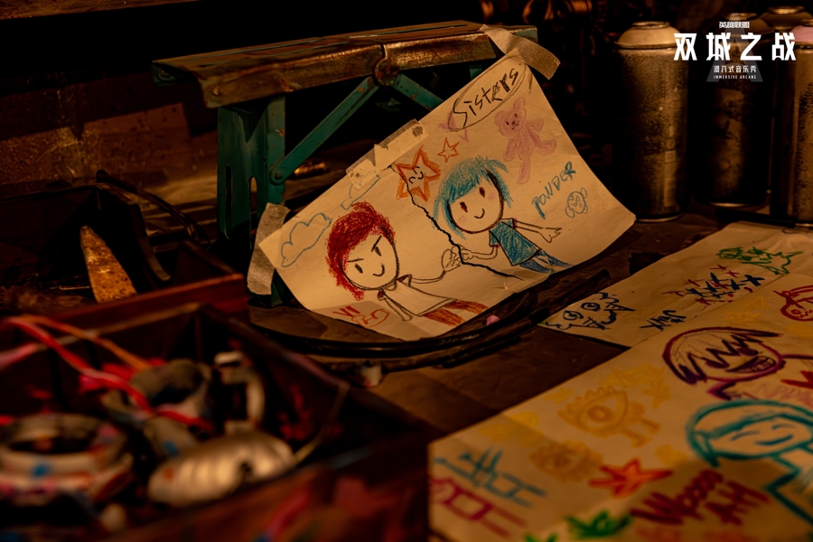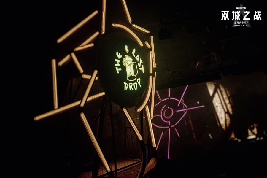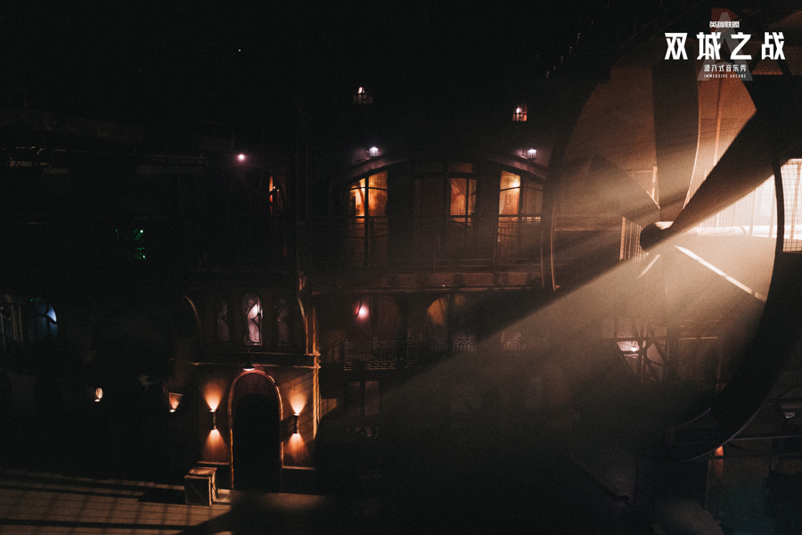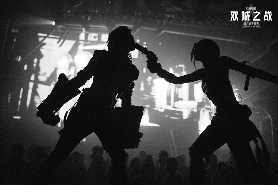 在表演形态上,《双城之战》突破传统舞台边界,将音乐剧、浸入式戏剧、肢体剧场与特技打斗有机融合。叙事不仅依靠台词推进,更借助身体的语言与空间的调度,实现故事的多维传递。音乐成为贯穿叙事、牵引情绪的核心脉络。30余首动画及游戏赛事热门单曲,包括《Enemy》《What Could Have Been》等,被解构、重现,融入戏剧动作与场景转换之中。对观众而言,音乐既是记忆点,也是一种提示,引导他们在复杂空间中持续前行。